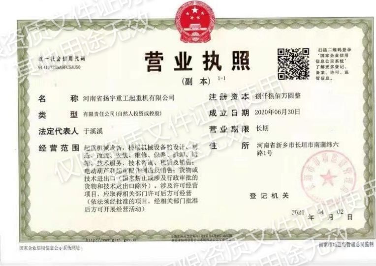 河南省揚(yáng)宇重工起重機(jī)有限公司