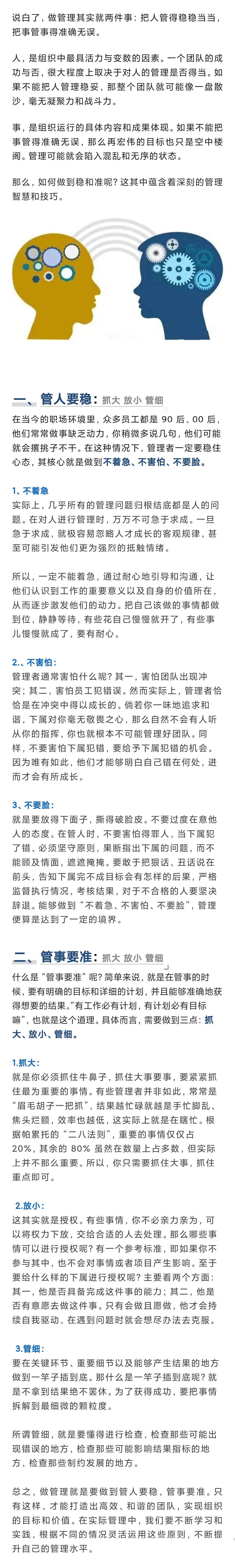 做管理就是兩件事:管人要穩(wěn),管事要準(zhǔn)!