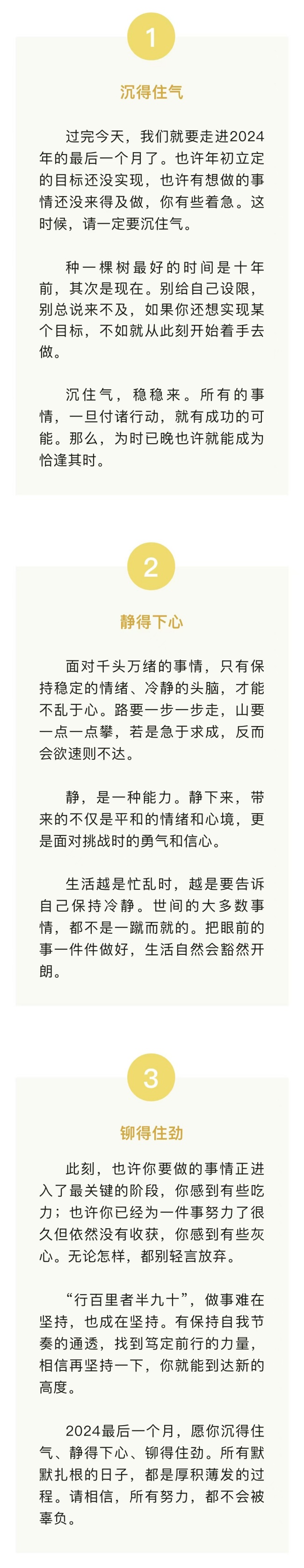 2024**后一個月,愿你沉得住氣、靜得下心、鉚得住勁