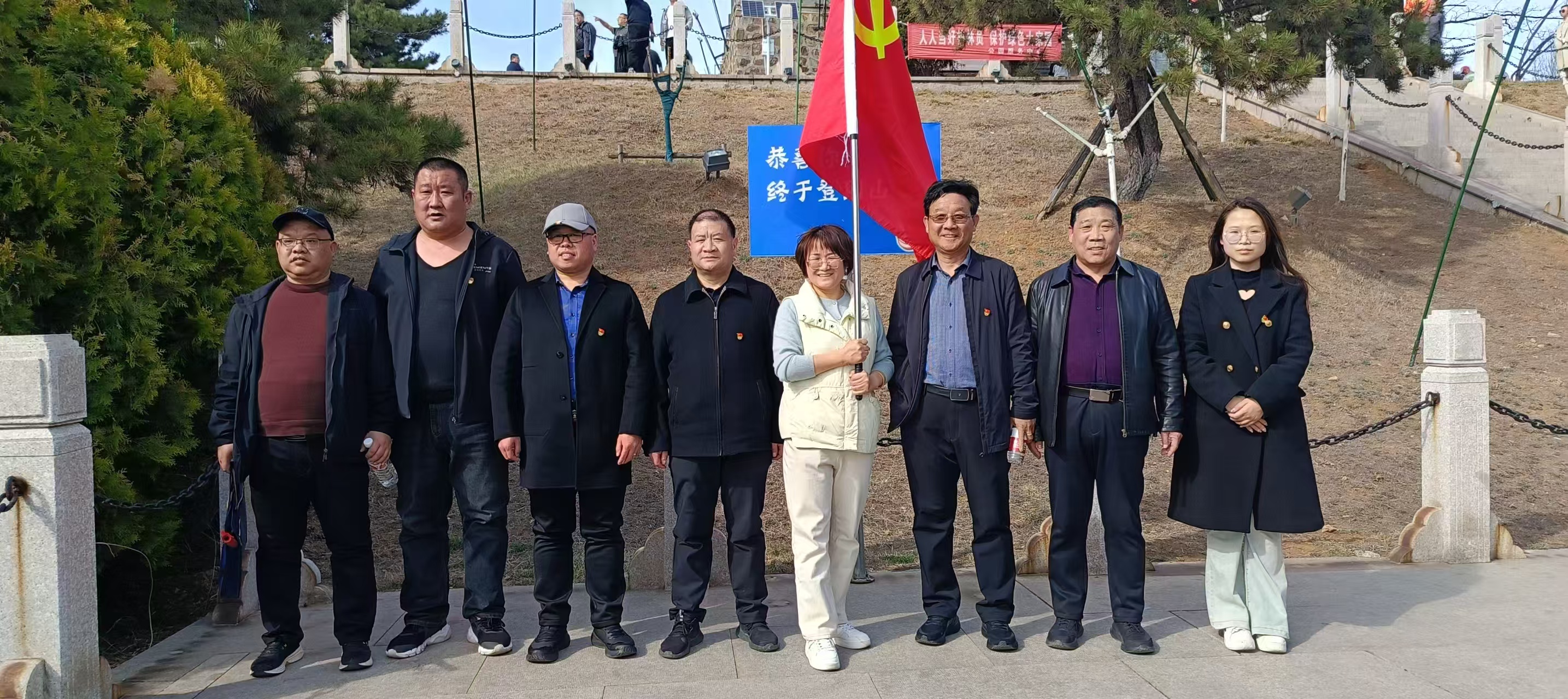下午2:30參加支部黨員人員佩戴黨徽,著裝整潔,在活動集合點白馬寺前廣場按時集合后,隨后排著整齊的隊列,健步向活動點白馬寺后山長江支隊紀念林出發(fā)。