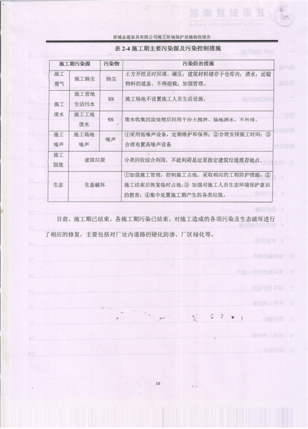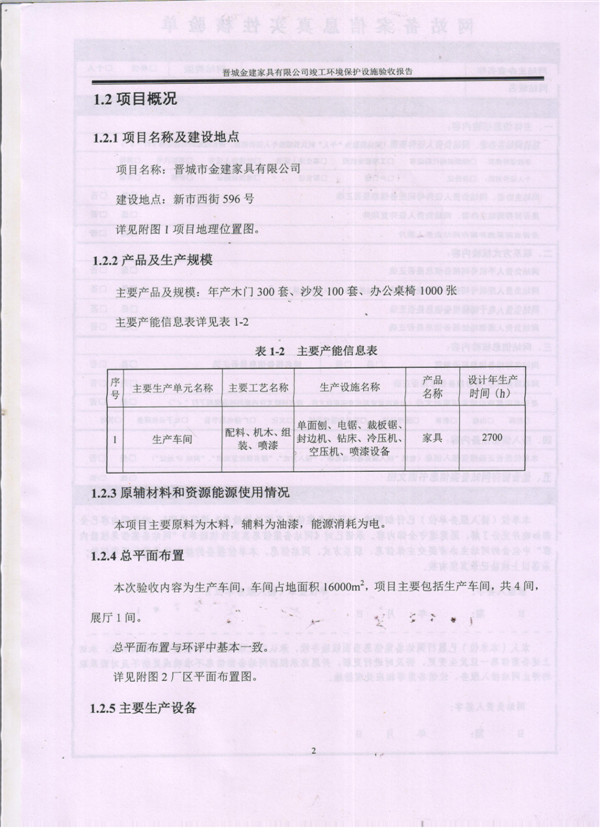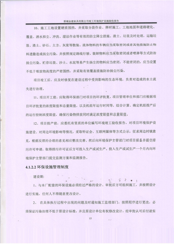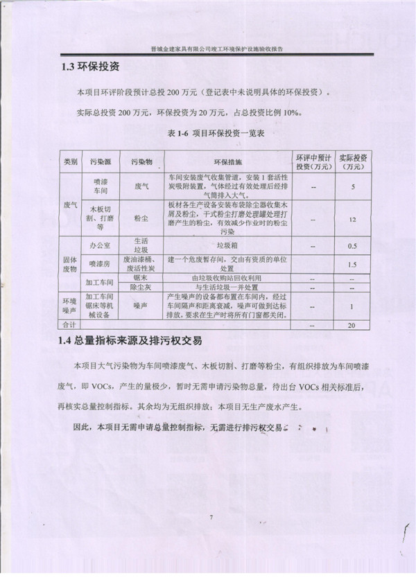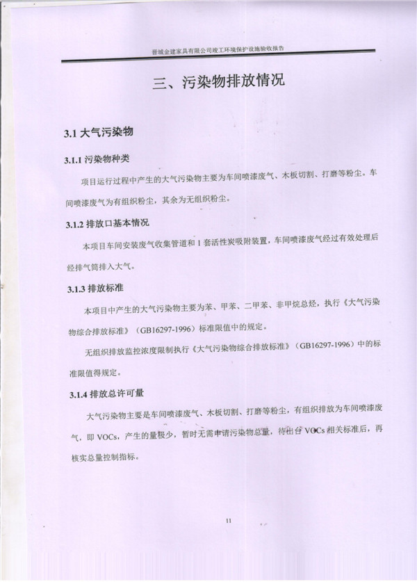 晉城市金建家具有限公司竣工環(huán)境保護(hù)設(shè)施驗(yàn)收報告